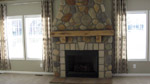 - River rock fireplace w/ gas logs